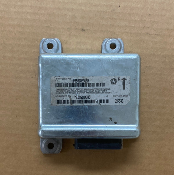 Used OEM computer SRS airbag control module for 1997 1998 1999 2000 2001 Jeep Cherokee XJ. Pulled from a running vehicle.